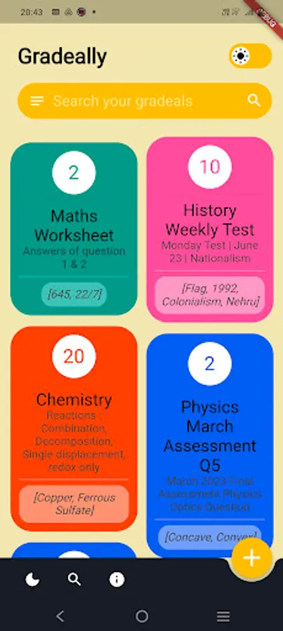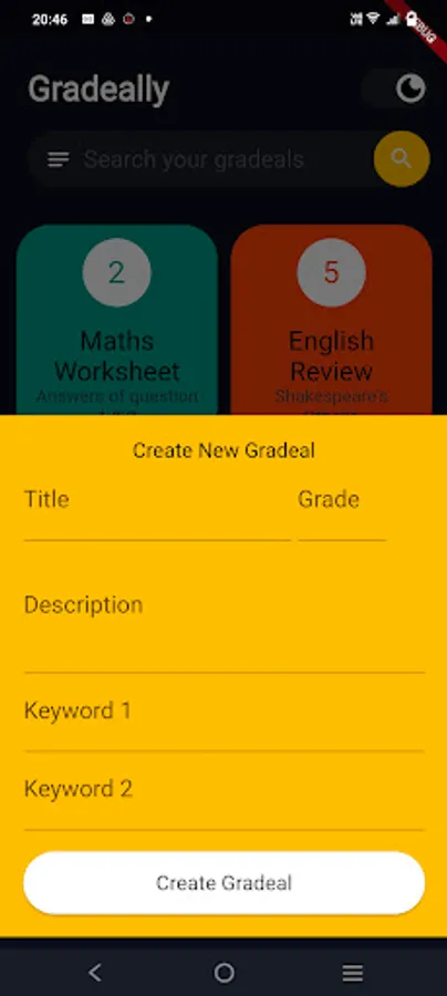 In several answer-correction systems, marks are awarded if certain important keywords are present in the answer. Gradeally lets teachers create 'gradeals' that have a name, description, and a list of keywords. For each gradual, the teacher can assign marks. Using machine learning (text recognition) and keyword detection, the final grade is automatically calculated by Gradeally.