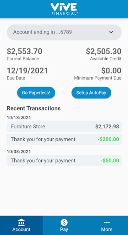 Vive Financial provides its cardholders an easy to use mobile application experience to make managing the Vive account quick and simple. Some of the features of the app: