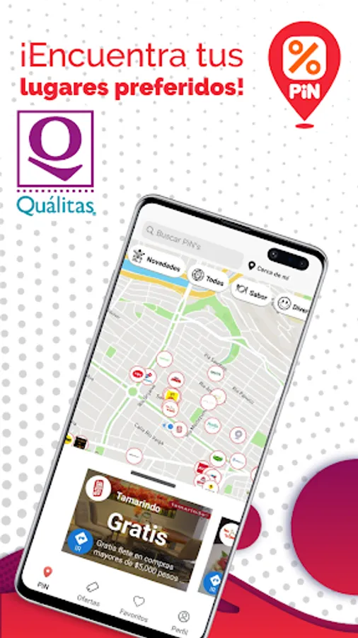 Quálitas PiN is the new and best application of unlimited offers and promotions throughout Mexico, Costa Rica and El Salvador. By acquiring your Quálitas PiN membership you can know in real time the more than 11,300 establishments where you can enjoy incredible discounts, we also recognize your consumption habits allowing us to send you exclusive promotions of great value for you and your pocket. With Quálitas PiN in the palm of your hand, get thousands of benefits and exclusive coupons that we have for you. We have extensive business coverage, DO NOT WAIT ANY MORE AND BE SURPRISED, MORE BENEFITS IN A PIN!