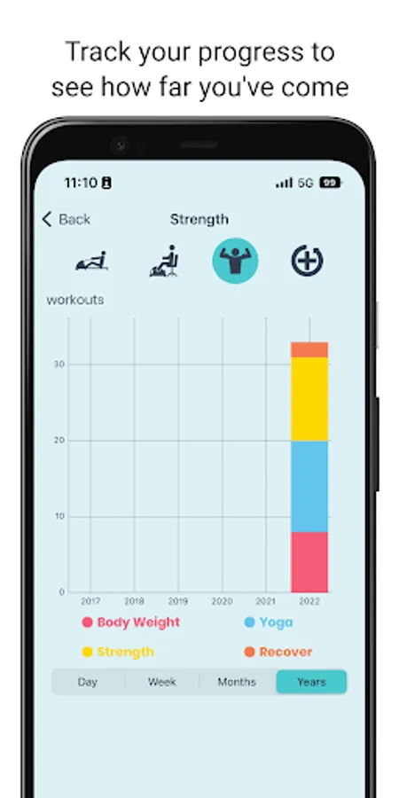 - Track fitness progress Daily, Weekly, Monthly, or Yearly