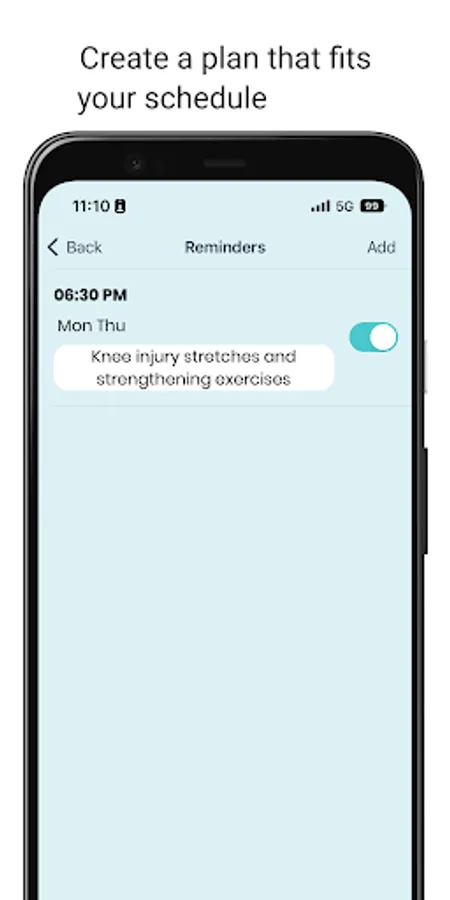 Easily track your fitness and rehabilitation progress. Log workout statistics including distance, time, & calories burned. Set a reminder for your exercises so you always stay on track.