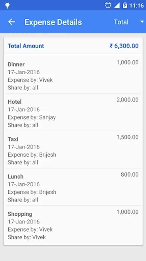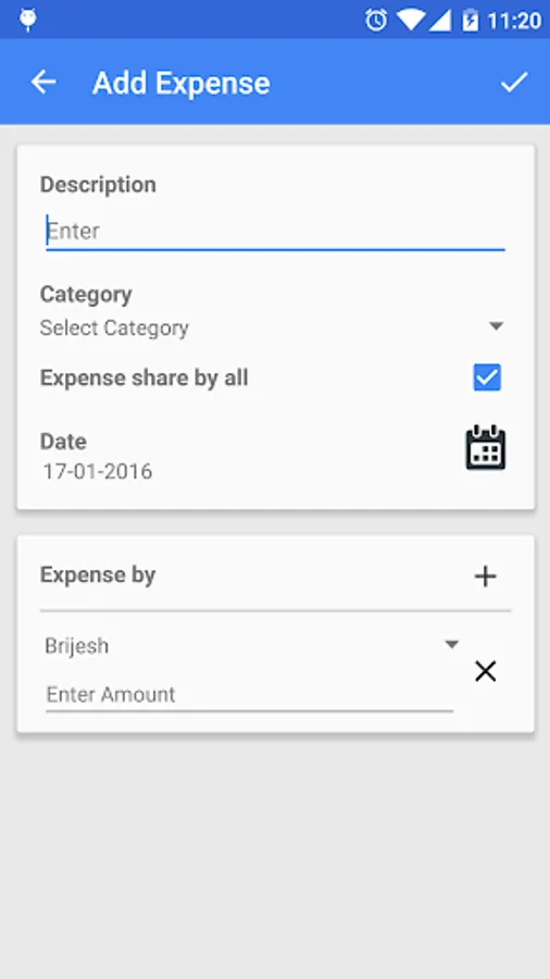 • Share By option to add expense for selected people