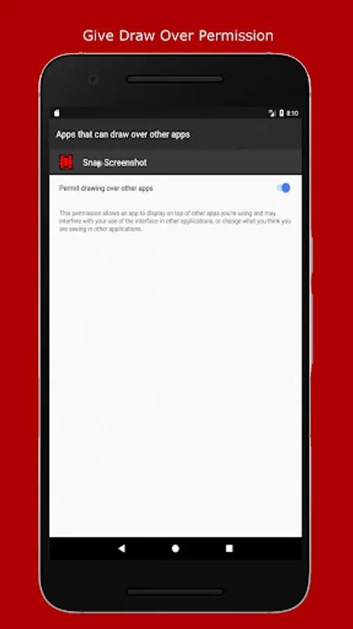 2. Give required permission (Draw Over other Apps and Write External Storage)