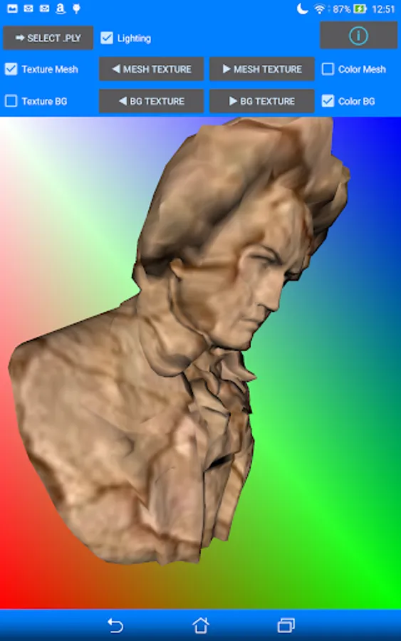 Tiny, fast, and free .PLY viewer! Supports .PLY format meshes, and allows you to view them in different modes, including: