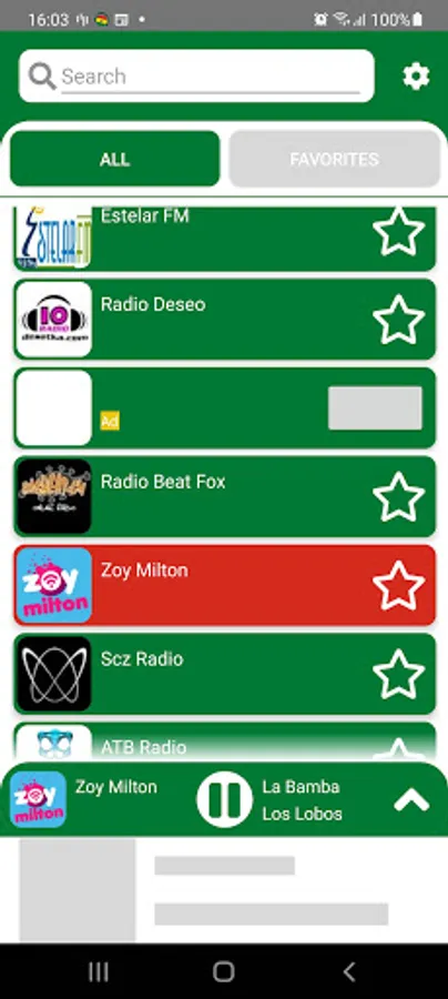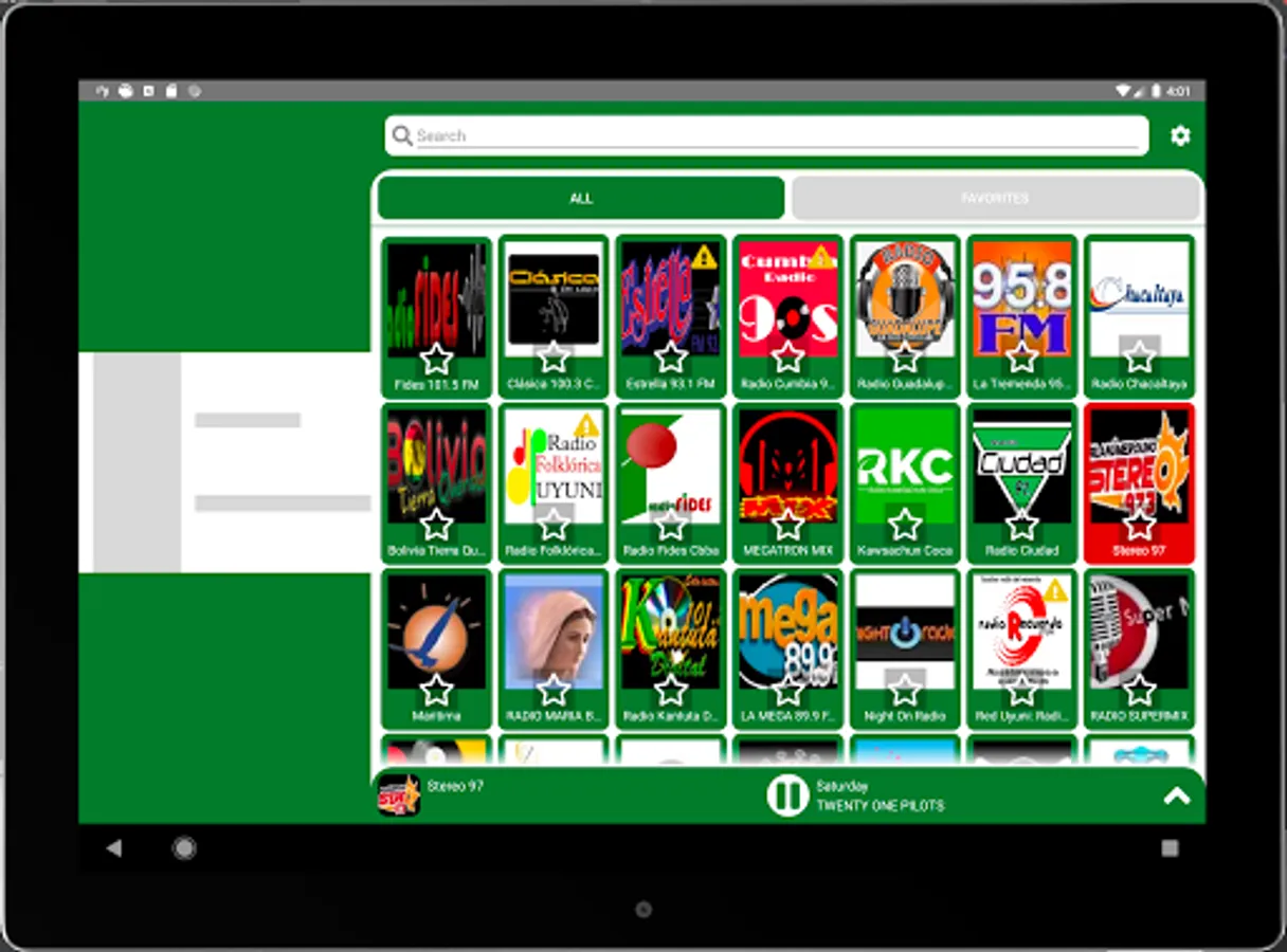 The radio station app covers a wide radio network of Bolivian radio channels.