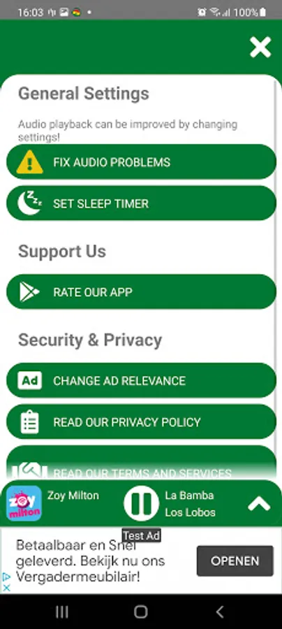 The radio app contains music from all regions! Listen through our radio app to all kinds of genres such as Christian music, pop, rock, dance music, ballads, metal, hardrock, hip hop, country, techno, reggae, punk, folklore, sports news…and more! Never get bored again with Bolivia FM by your side.