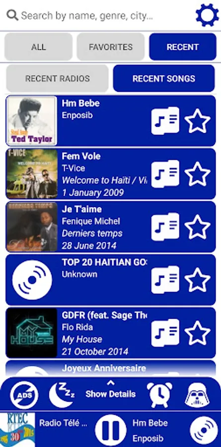Haiti radios app. Use your wifi or 4g connection to listen to live music from the radio stations of Haïti. The app contains FM and AM radio stations. Enjoy the music from Haïti for free all across the country or abroad.