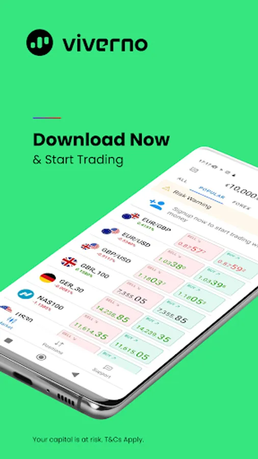 Viverno is not your average forex broker. The Viverno mobile app opens the door to fast and reliable online trading on CFDs for forex, commodities, shares, indices, stocks and more. The diversity of instruments across classes, instant deposits and withdrawals and intuitive user interface, make Viverno ideal for beginners or advanced traders alike. Trade anywhere, anytime with the full-featured Viverno mobile app. Receive notifications on your mobile device and always stay up-to-date with market news. The app makes it easy to manage, overview, and execute trades while you keep up with your busy schedule. Download the Viverno app and start forex trading in a few clicks.
