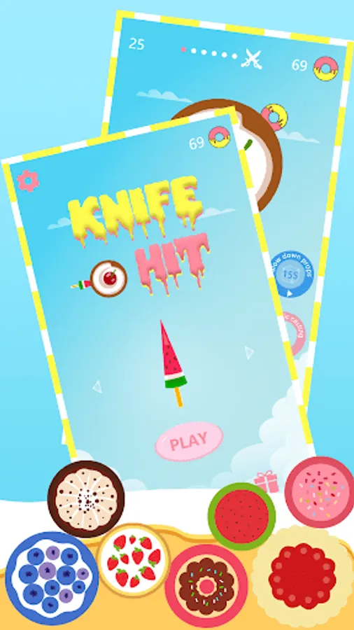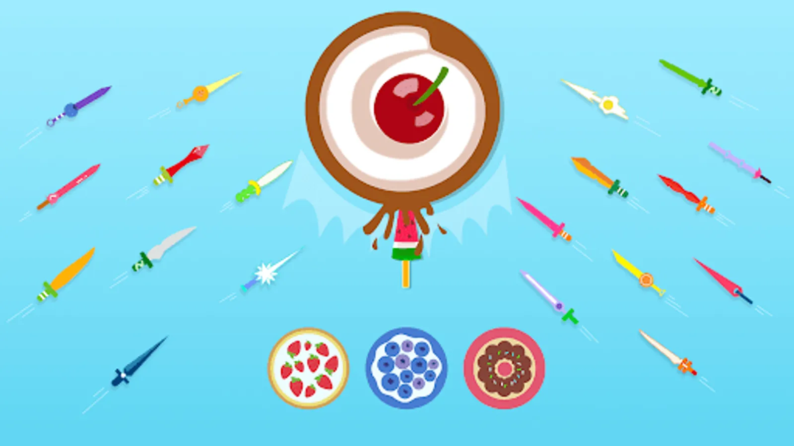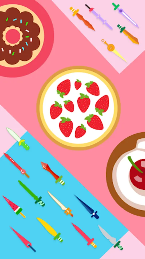 Throw the knives into the logs to break them. Slash the apples and unlock new knives. Each 5th stage is defended by a boss - beat them to get exclusive knives!