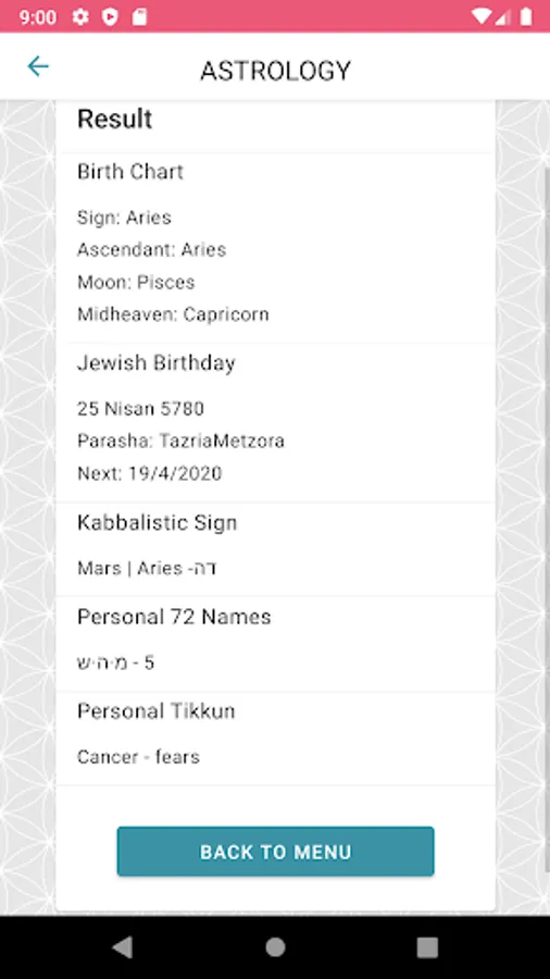 Calculate your kabbalistic birthday, get to know in which sign your tikkun is and your personal 72 names.