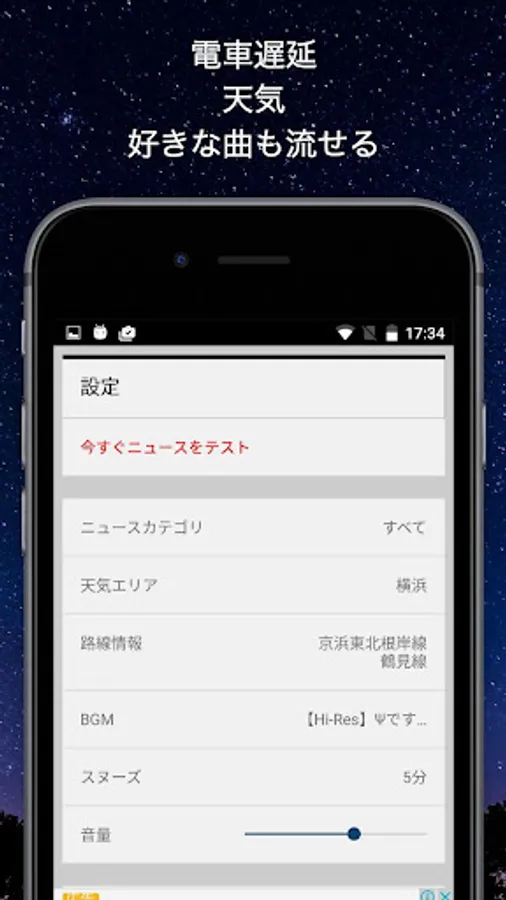 ニュースは、社会、政治、経済、国際、スポーツ、文化・芸能、科学・医療、47都道府県の地域ニュースから選べます。また、エリアと路線を登録すれば、天気(傘情報)や電車の遅延情報も読み上げます。さらにBGMには、端末に保存している好きな曲を設定できます。