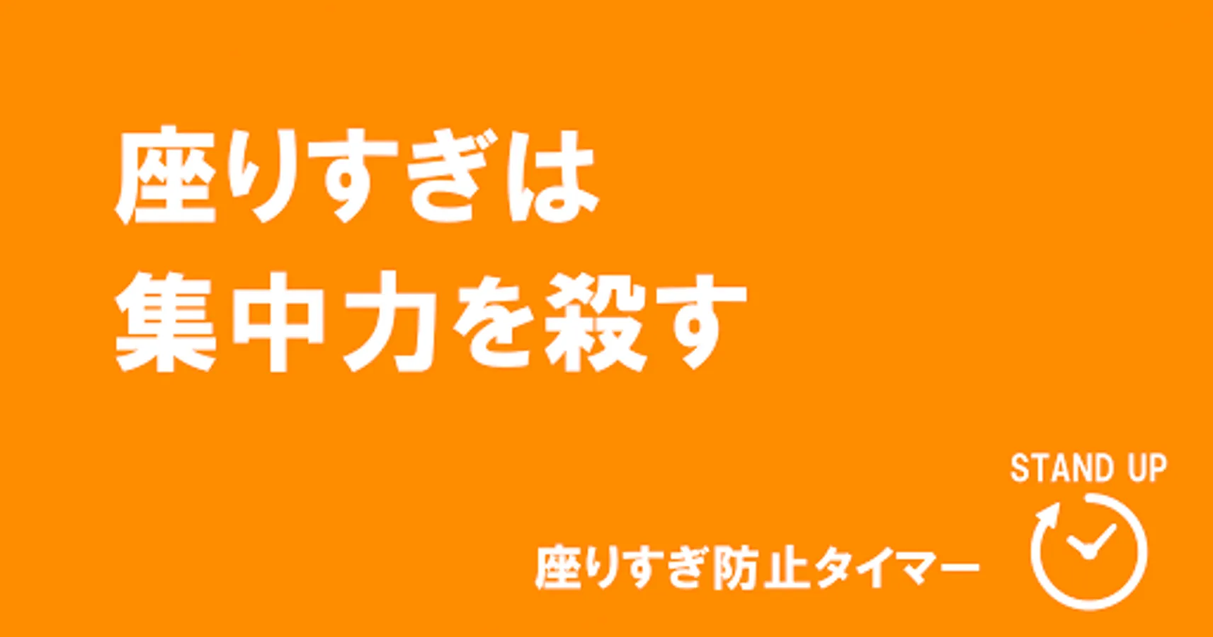 では、どうしたらいいのか。答えは単純で「定期的に立ち上がること」です。15分から30分に1回立ち上がって歩いたり体操をするのが理想とされています。たったそれだけで血流が良くなり、脳が活性化し、集中力も高まるというわけです。スタンドアップタイマーは、そのために最適化されたタイマーアプリです。