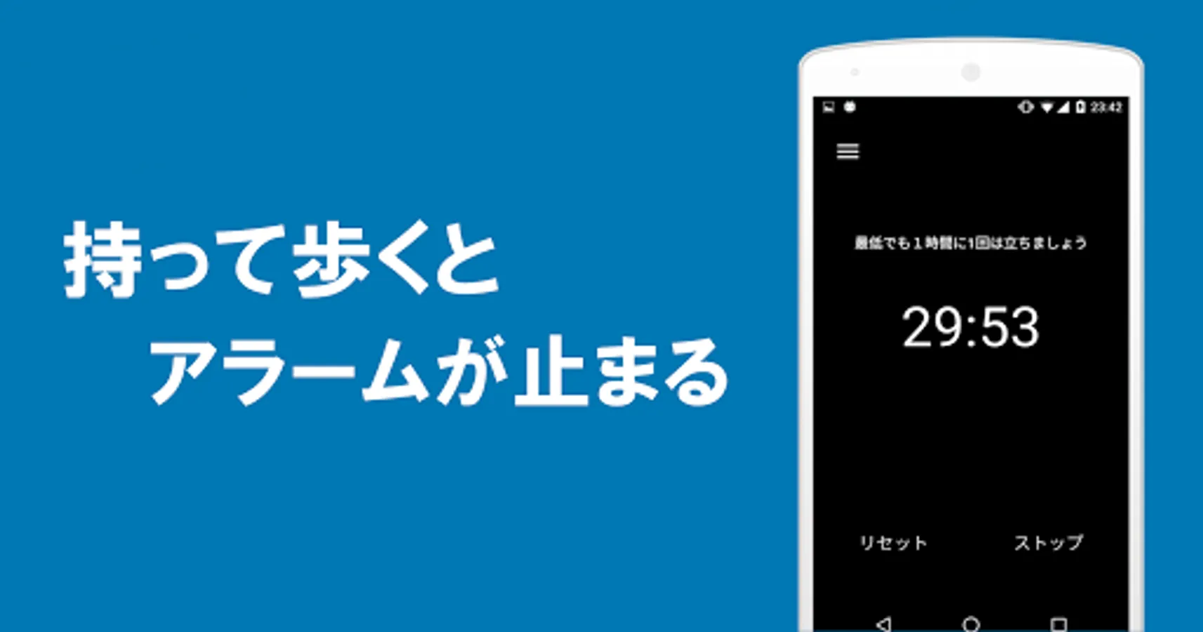 スタンドアップタイマーは、スマホを持って歩くことでアラームが止まる仕組みです。従来のキッチンタイマーやタイマーアプリは、アラームが鳴るとワンタップで止められるようになっていますが、それだと面倒くさいときはすぐに止められるので立ちあがるという点では逆にデメリットになります。だからこそスタンドアップタイマーが役立ちます。これはちょっとした違いですが、毎回ちゃんと立つことを習慣化するにはこの違いがポイントになります。