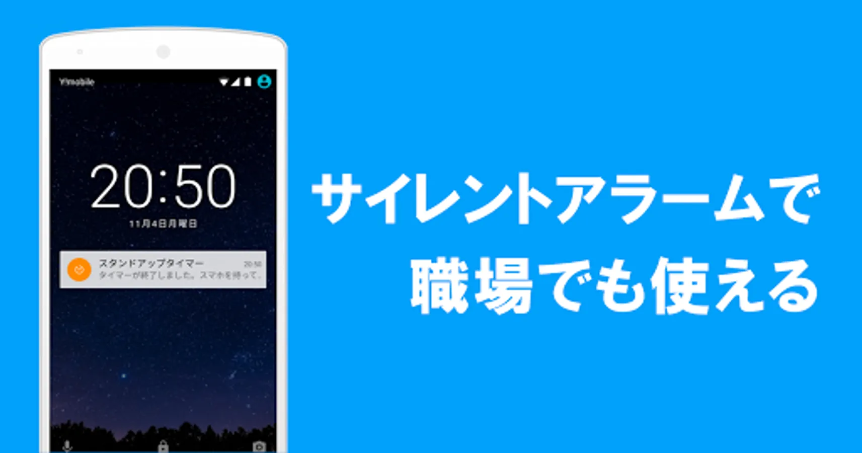 従来のタイマーにはサイレント機能がなく、自宅以外ではなかなか勉強や仕事に使えません。スタンドアップタイマーにはサイレントモードという音もバイブレーションも鳴らないアラームがあるので、職場や図書館、自習室などでも使えます。