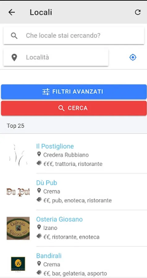 The only portal that offers constantly updated information on restaurants, pizzerias, bars, pubs, discos in Crema, cremasco and surroundings! A guide to shopping, to the events scheduled on the premises and not only in Crema, Lodi, Orzinuovi, Pandino, Treviglio, Castelleone and surroundings!
