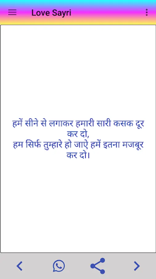 Latest All in one Sayari is one of the best collection of latest pyar mohaabat ,love shayari app which is totally free and no internet connection required . Love is one of the important part of human life for share there feelings to some we must need a proper text which is attached by our emotion for that this is best and suitable app for you just use and share ultimate feelings .