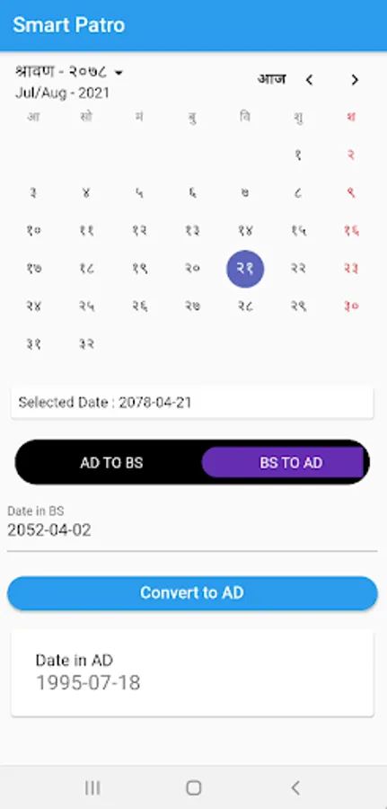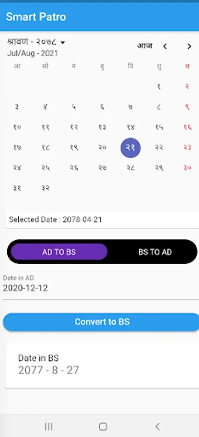 Smart Patro helps you to convert dates in AD to BS and vice versa.