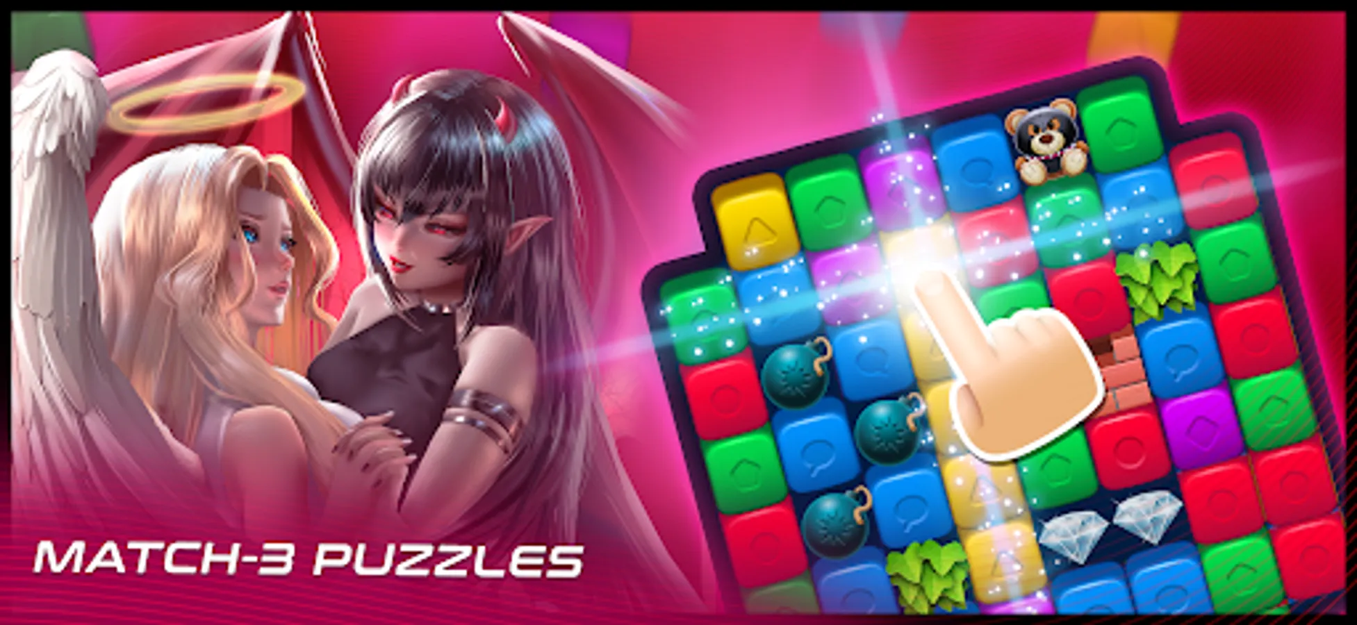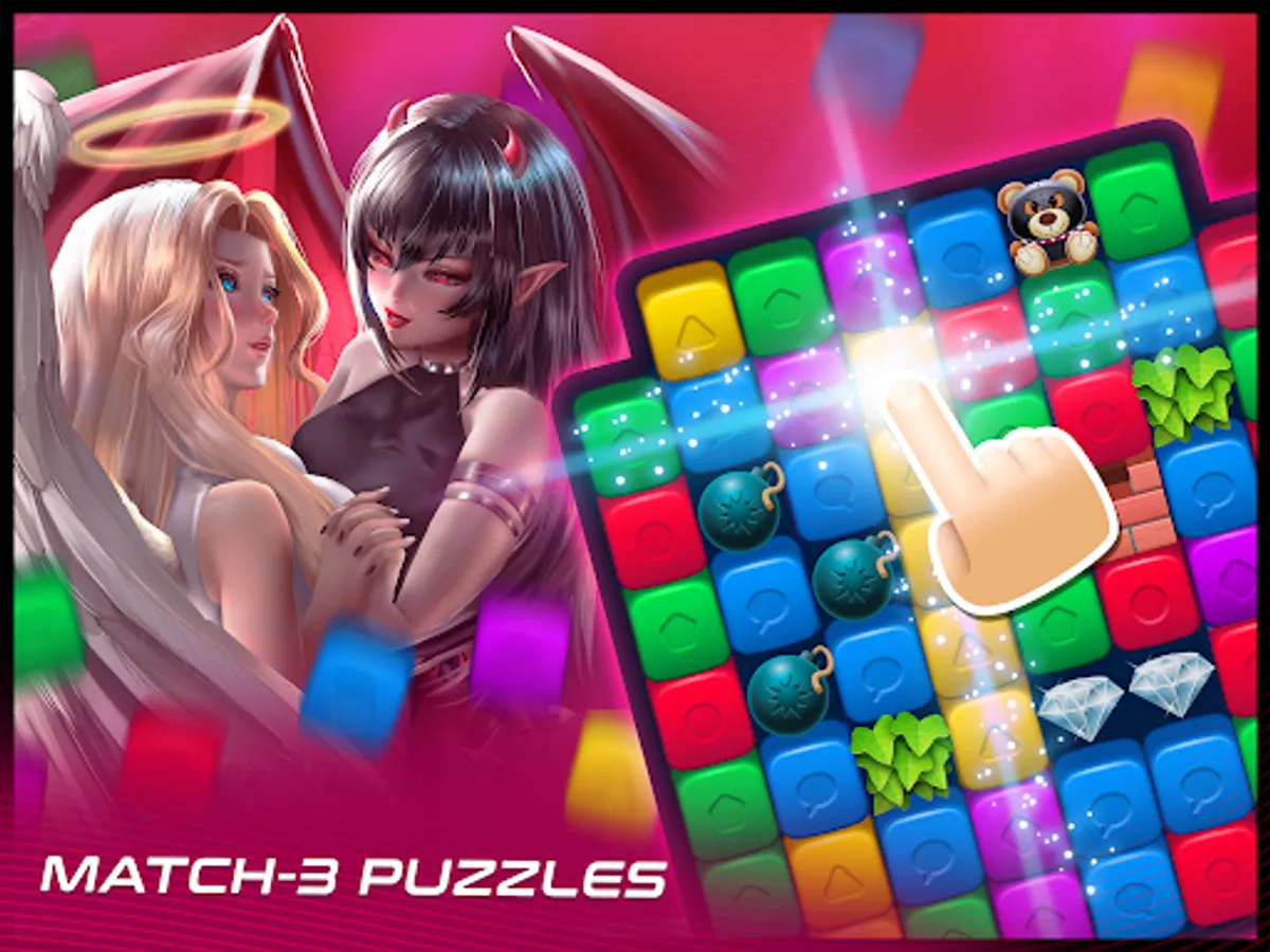 There's a battle between Heaven and Hell, and their spoil of war is you! Are you ready to choose between an innocent angel, or a sinful demon? Blast everything in the Match-3 Puzzles to unlock new heavenly pick up lines, exchange pictures and uncover the mystery of celestial meetings. When it comes to LoveNest - Anime Character Sim, the only capital sin is to miss out!