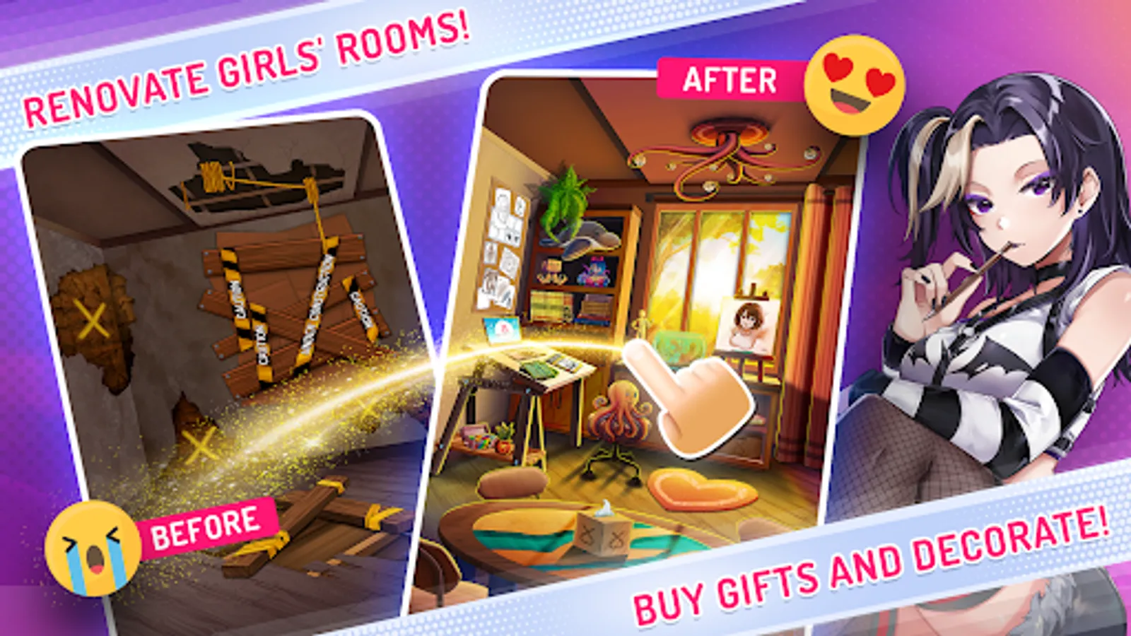 Build a relationship with your waifu and watch your love grow! With over 280 levels of puzzles and 30 waifus to date, there's plenty of content to keep you busy all summer long.