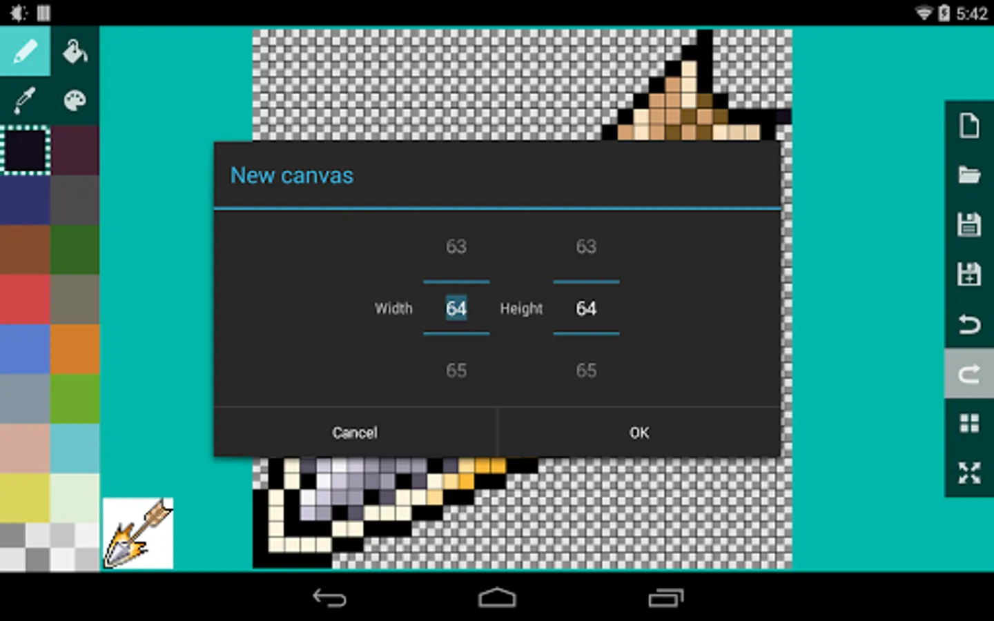 - canvas size from 8 to 512 pixels wide or tall
