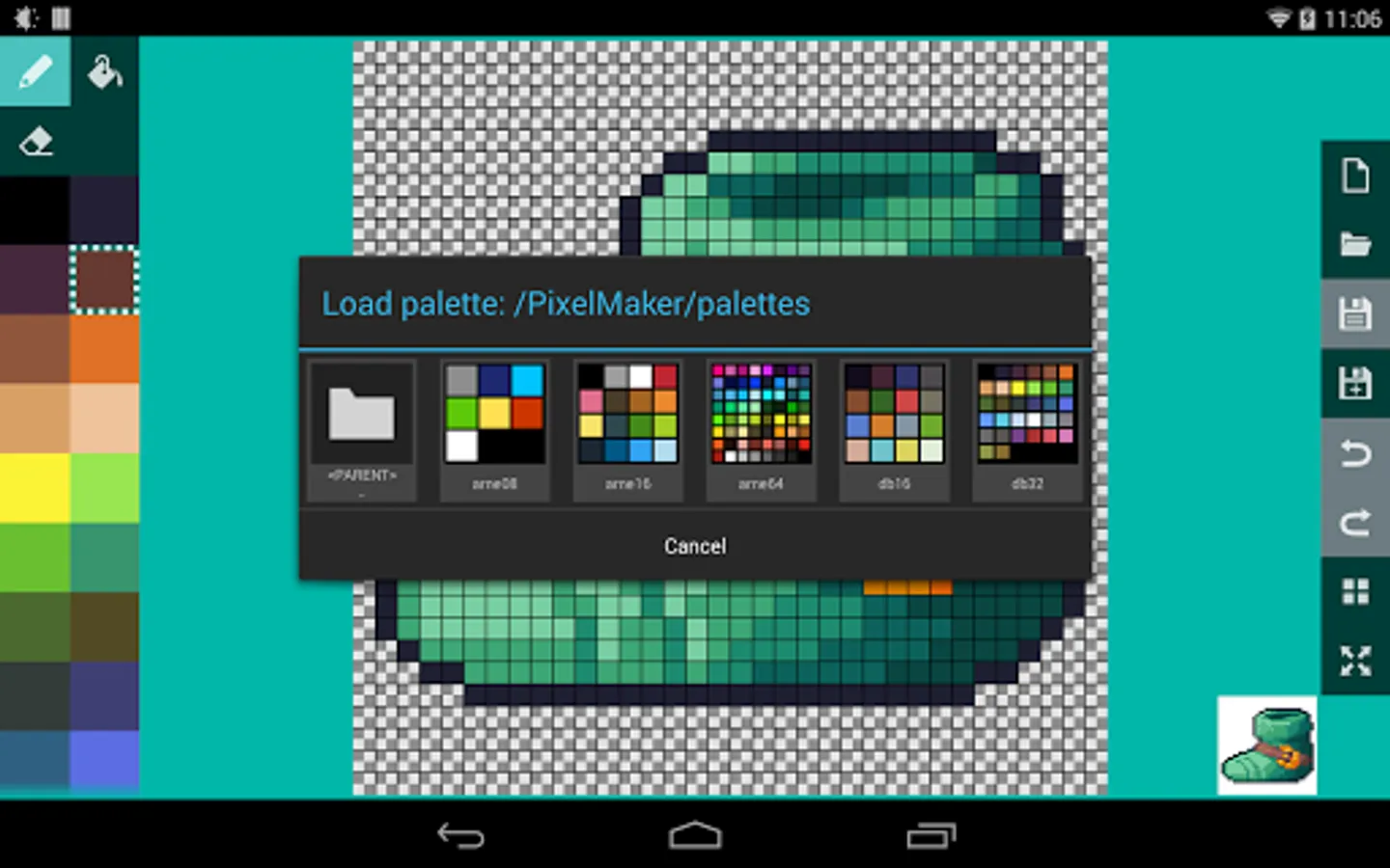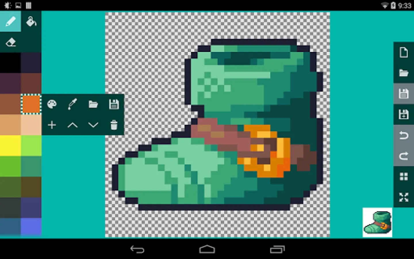 - when using the pen or eraser, tapping again on a single pixel you've changed to undo it to its previous color