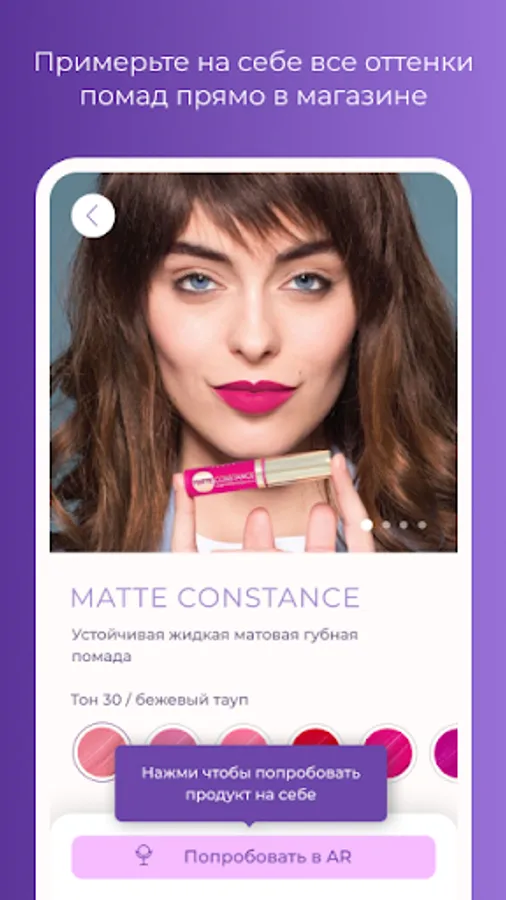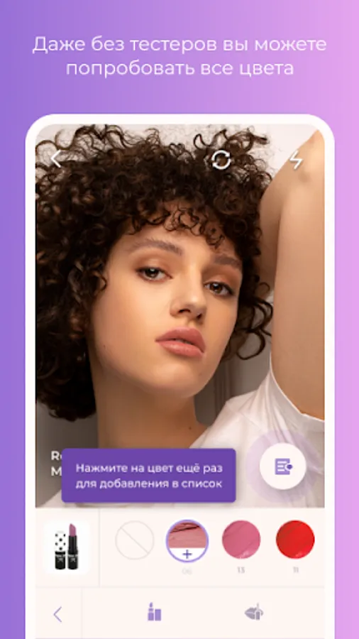 Try on your favorite brand media. And all this is available in AR mode! Use your camera or your photo to evaluate makeup and try different styles.