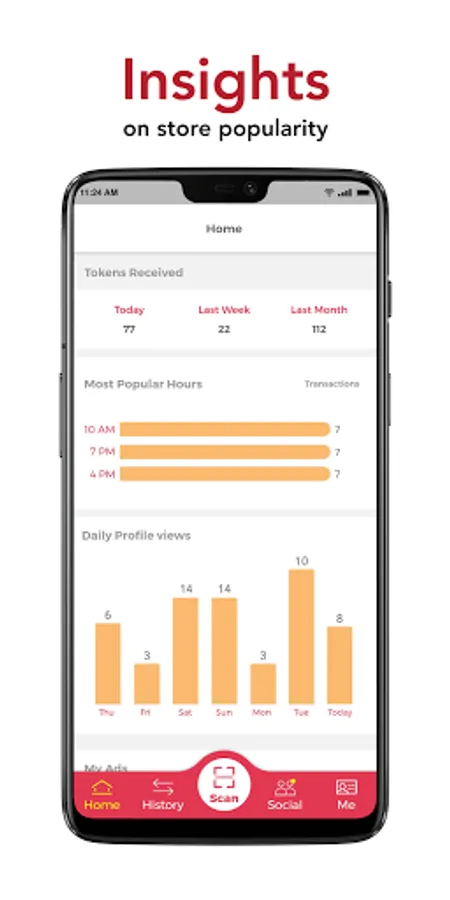 Collaborators may view any past Vivify transactions made on the Vivify Collaborator App to keep track on transaction details, and how often Vivify transactions occur. The Vivify Collaborator App will also show the number of people who viewed their pages on the Vivify App and the most popular hours visited by our Vivers.