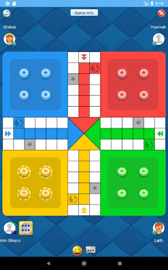 Star positions are safe in our version of ludo: If you go to those positions, no other pieces can hit you.