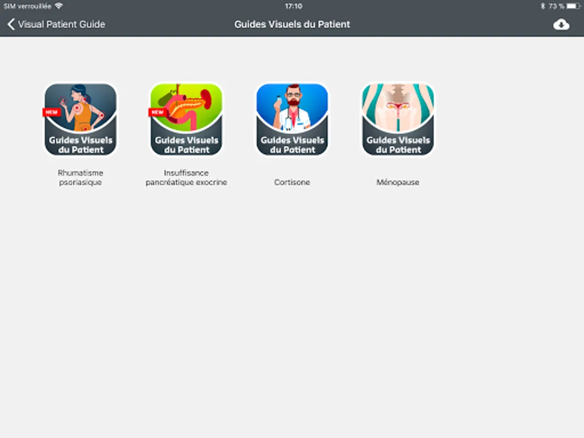 The e-Visual Guides of the Patient help to better understand a pathology in images. The disease, its causes, its symptoms, its diagnosis and its treatment are presented in the form of illustrations, animations, videos and short texts, as well as a quiz to allow everyone to test their knowledge.