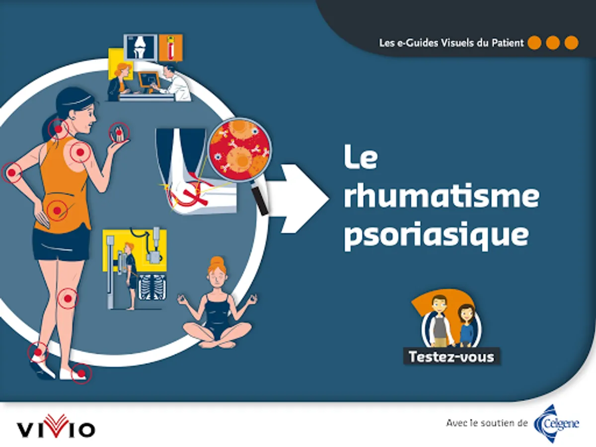 The e-Visual Guide to Psoriatic Arthritis Patient is an application that allows you to better understand and manage psoriatic arthritis, in a didactic and interactive way. The e-Visual Guide to Patient Psoriatic Rheumatism was developed by ViVio, with the support of Celgene.