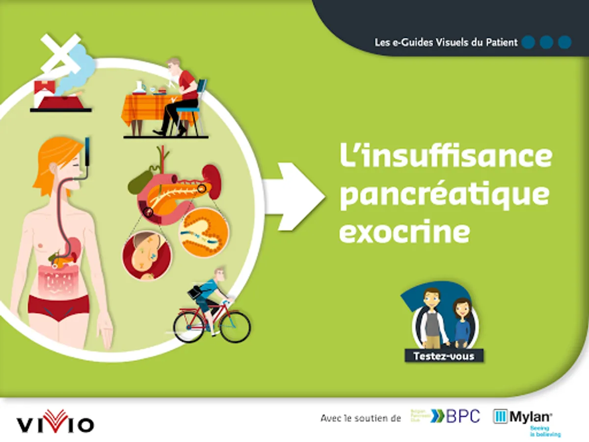 The e-Visual Guide of the Exocrine Pancreatic Insufficiency Patient is an application that allows you to better understand this disease, in a didactic and interactive way. The e-Visual Guide to the Exocrine Pancreatic Insufficiency Patient was developed by ViVio, with the support of Mylan.