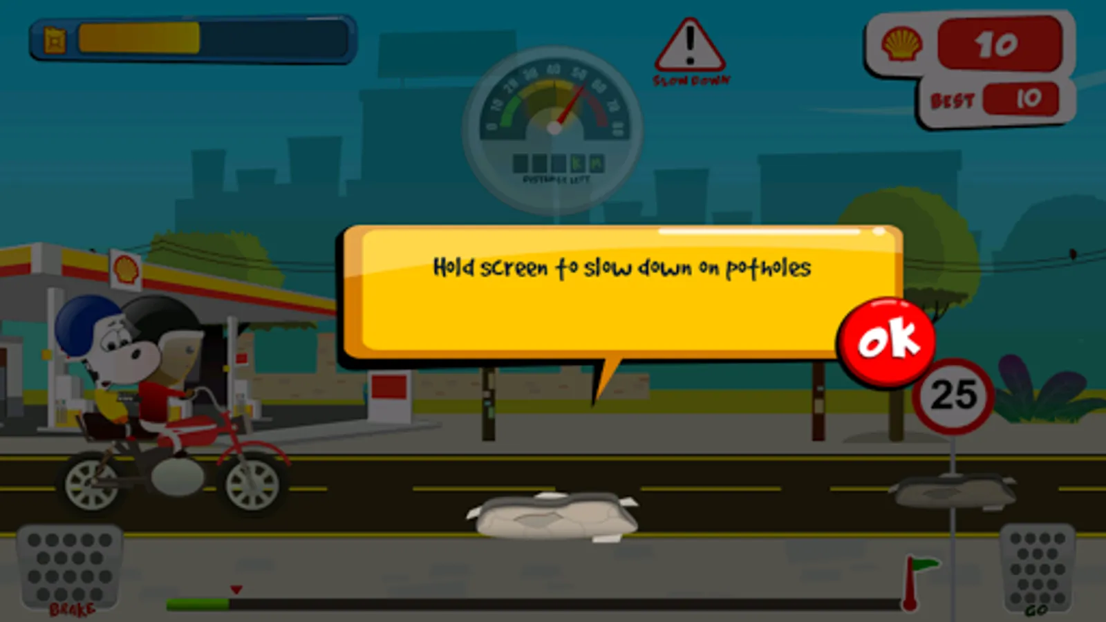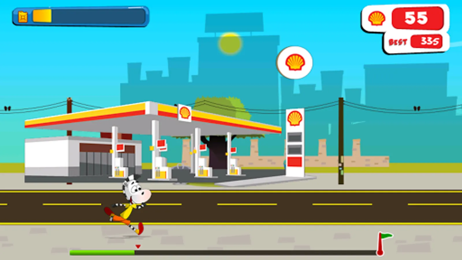 Meet, Zizi the Zebra a young boy aged 8, that would like to get to his friend's birthday party. To get there, he will have to use the road safely. Zizi will have to answer questions on proper road usage correctly, avoid road obstacles, drive safely over speed bumps and potholes to manage his fuel along the journey. He will keep collecting Shell fuel to facilitate his journey so that he can arrive at the party.