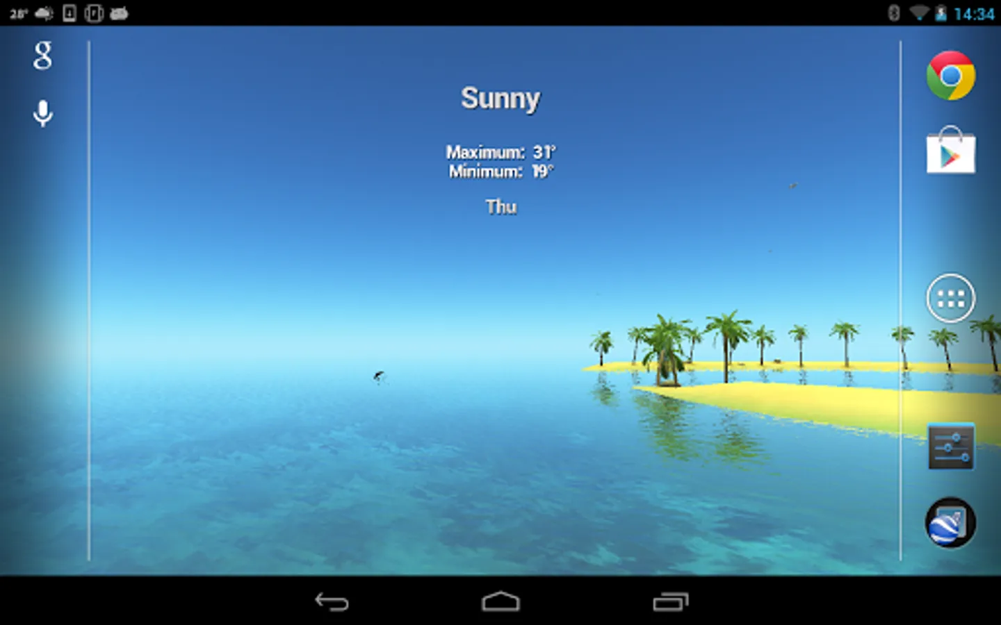 Maldives 3D, True Weather animates the current weather, day and night as a 3D live wallpaper for your phone or tablet. The weather is reported for your current location or specified city. The live wallpaper is animated in real time 3D. It also include widget for 10 days graphics forecast.