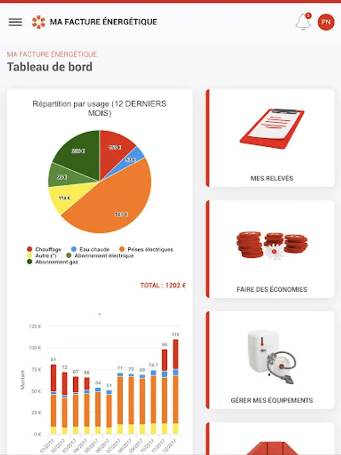 1 - Homeboarding communicates to me the monthly distribution of my energy consumption: On my heating, my hot water consumption, my equipment related to my electrical outlets, my other uses (Lighting, ventilation, heating and water distribution pump domestic hot water, hotplate) and cooling if necessary.