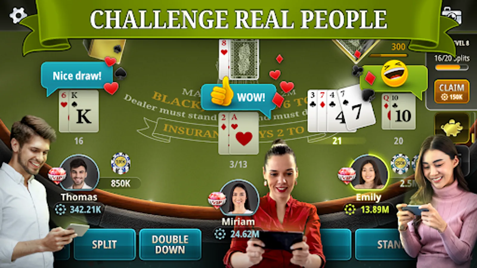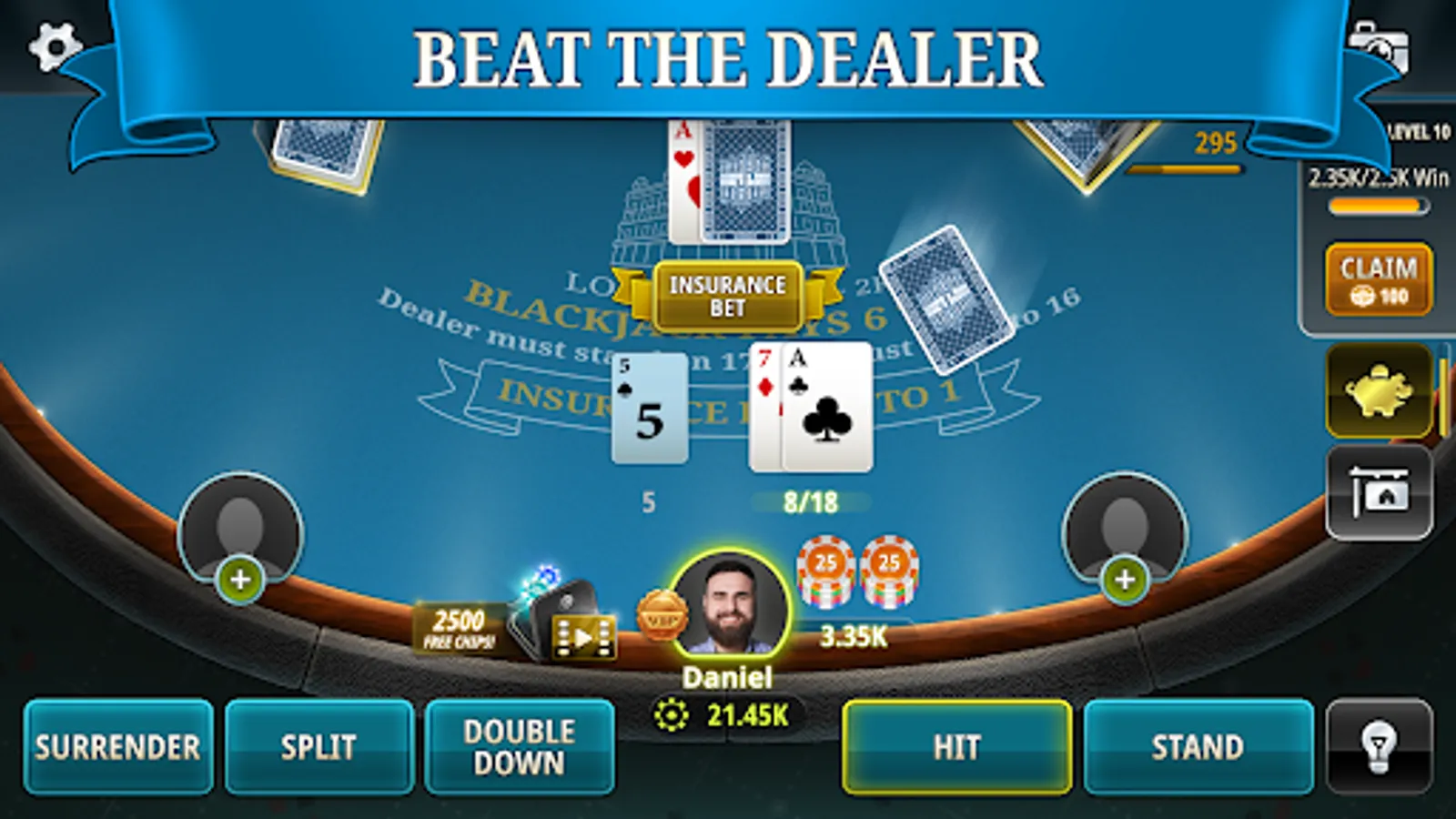 Black jack 21 app gives you unlimited chips for FREE - providing maximum entertainment & real life card game experience.
