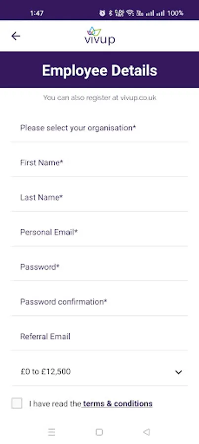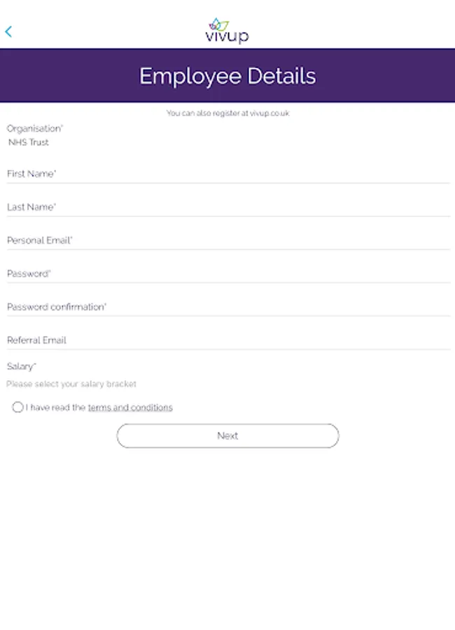 You can register directly within the App, but note your benefits provider needs to be a member of Vivup. For more information, please visit https://www.vivupbenefits.co.uk