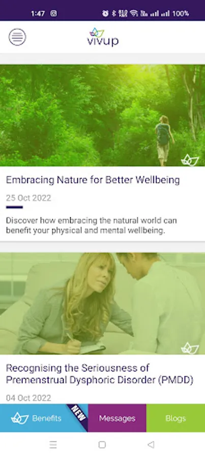 The App also provides you with access to your benefits provider’s messages, and helpful content from our curators