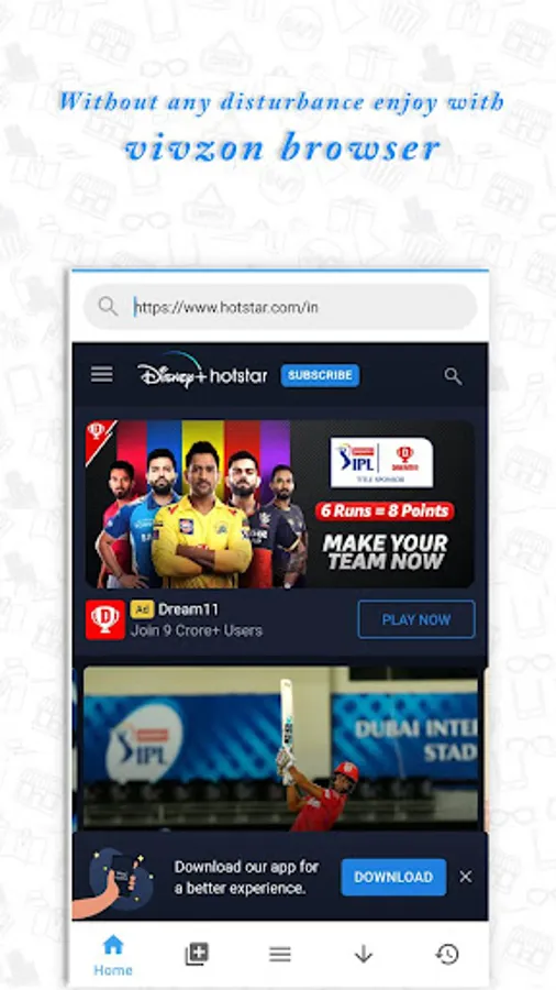 Vivzon Browser is one of the best Indian browsers that’s developed keeping the Indian users in mind. This Mobile browser is designed to provide a fast and secure internet surfing experience along with some of the most engaging News & Entertainment content available today.