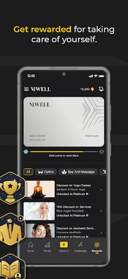 Status Tiers: Level up your journey with VIWELL’s unique status tiers: Bronze, Silver, Gold, Platinum, and Black. Earn points by engaging with the app and unlocking higher statuses for better rewards and discounts.