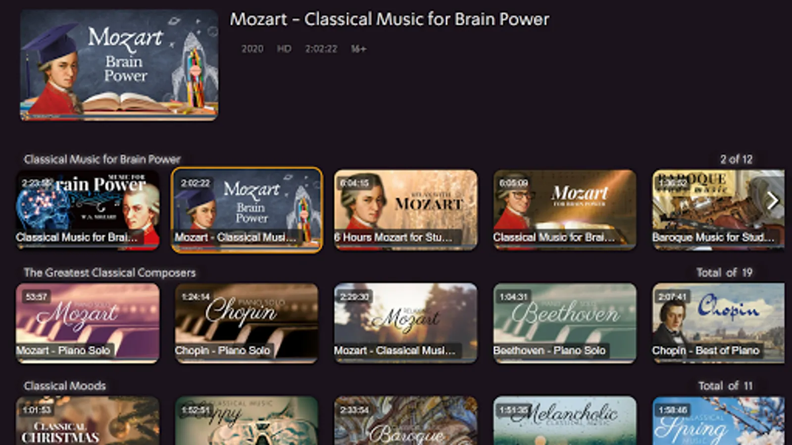 🎶 Keep your favorite music on the favorite list to access them anytime. You can also download your favorite classical music on TV and listen to them anytime.