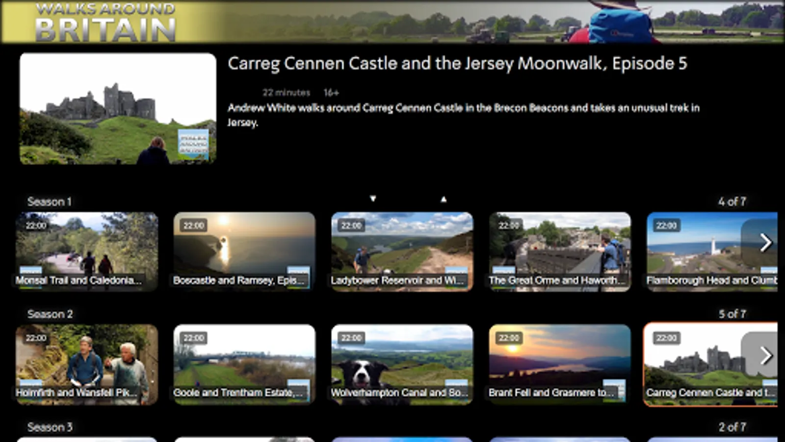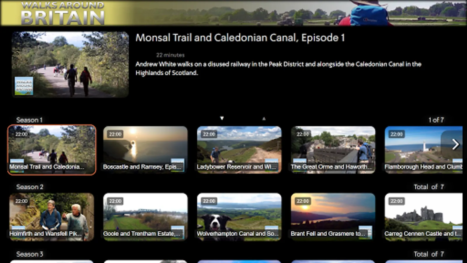 The Walks Around Britain app brings the whole library for Britain’s longest-running walking TV series to your television, in HD and on-demand. Join Andrew White and the team on great walks with great stories and landscapes from across Great Britain - perfect to either inspire your walking or just to enjoy from your armchair