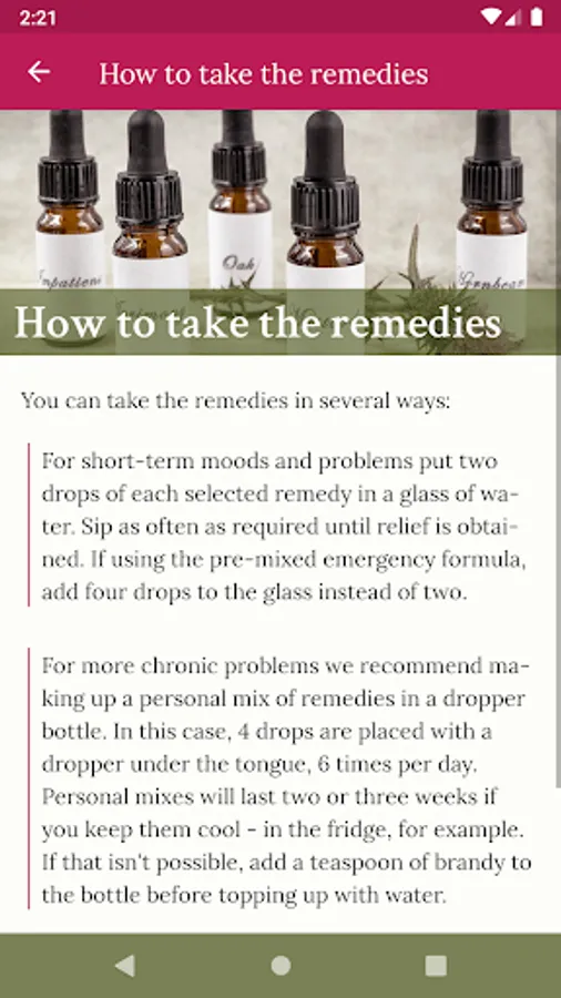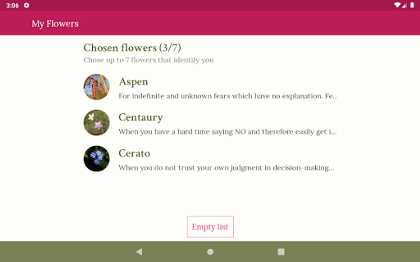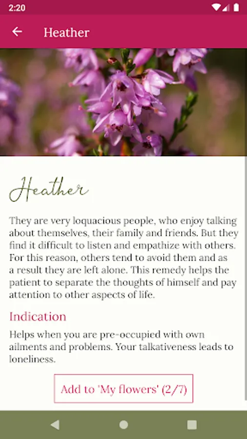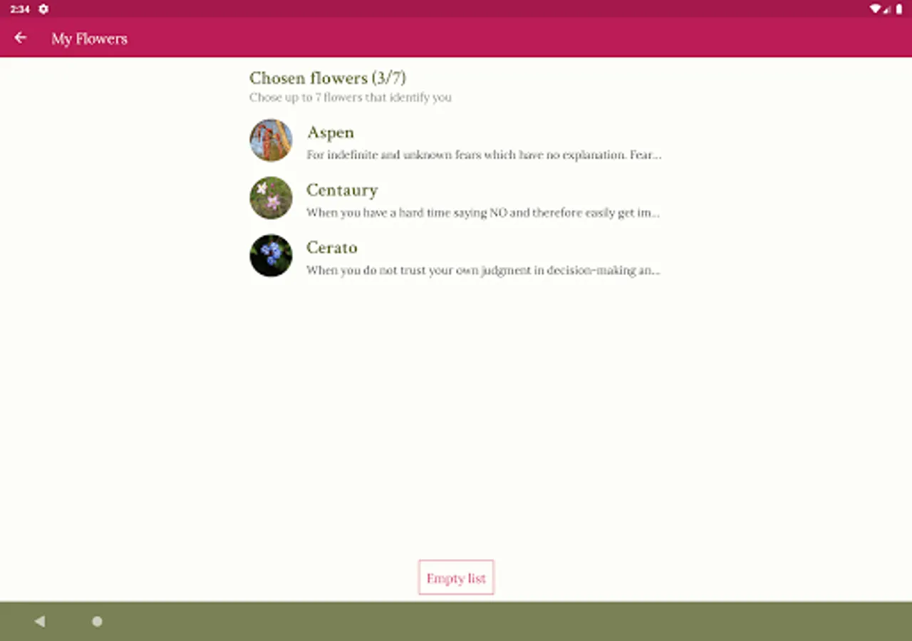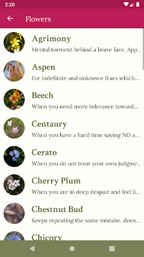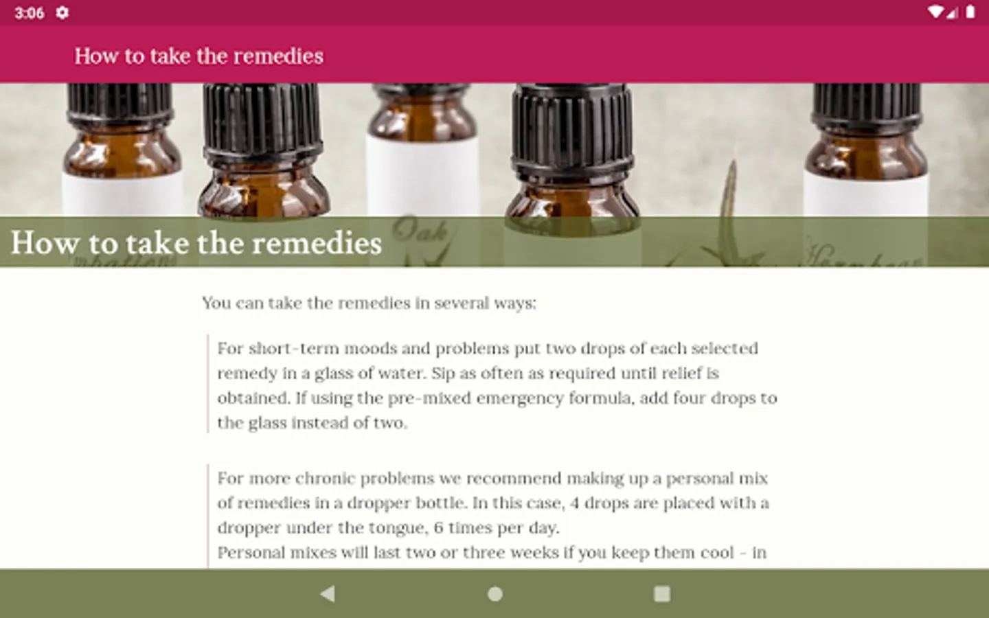 This application seeks to help professionals and the public in general, to find more easily the flowers that best suit their needs, respecting the principle of "simplicity" of Dr. Bach. Whose central message was: "We are all healers." It was the will of Dr. Bach that anyone could prepare their own treatment and that is why he created a simple choice of flowers. Even so, it is always advisable to go to a professional therapist when the problem is chronic.