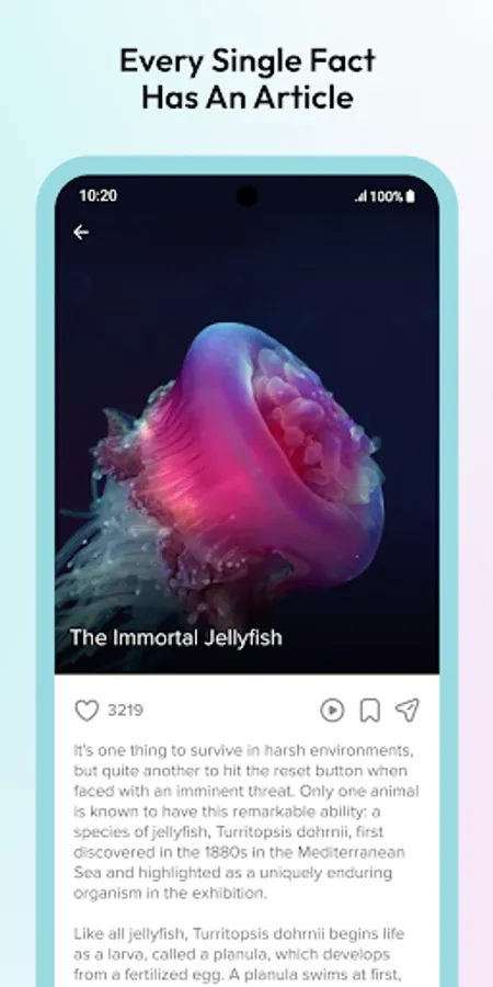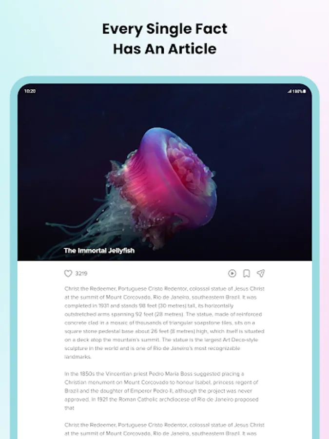 There are many features in Ultimate Facts that no fact app has. For example; It has an "Article" page with a detailed explanation of each fact and a resource link for you to gain insight and learn more.