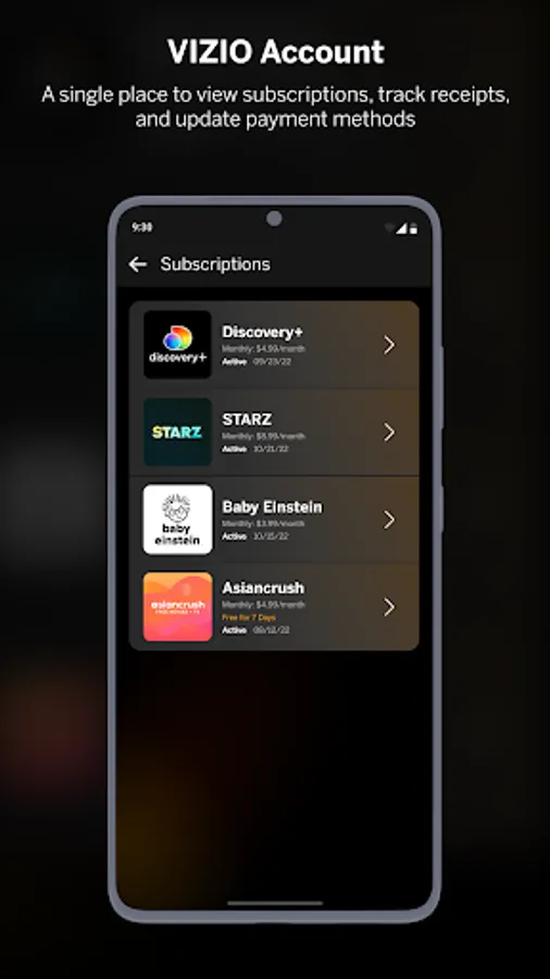 The applications and content pictured herein or described on this page may only be available in certain countries and languages, may require additional fees or subscription charges, and may be subject to future updates, modifications, interruption and/or discontinuation of service without notice. VIZIO has no control over third party applications or content and assumes no responsibility for the availability or interruption of such applications or content. Additional third-party terms, conditions and restrictions apply. High-speed/broadband Internet service and access equipment are required and are not provided by VIZIO. Not all Google Cast-enabled apps are integrated with VIZIO SmartCast and may require additional steps to cast.