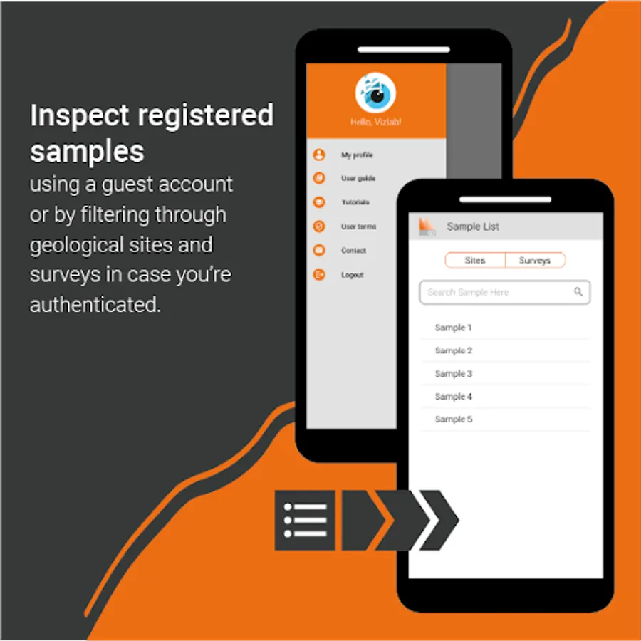 Mosis GO is a mobile application that facilitates the collection and visualization of geological samples, it allows authenticated or guest users to use it. Three major utilities are observed, Register Sample, Import Sites, and Registered Samples. The features descriptions are presented below: