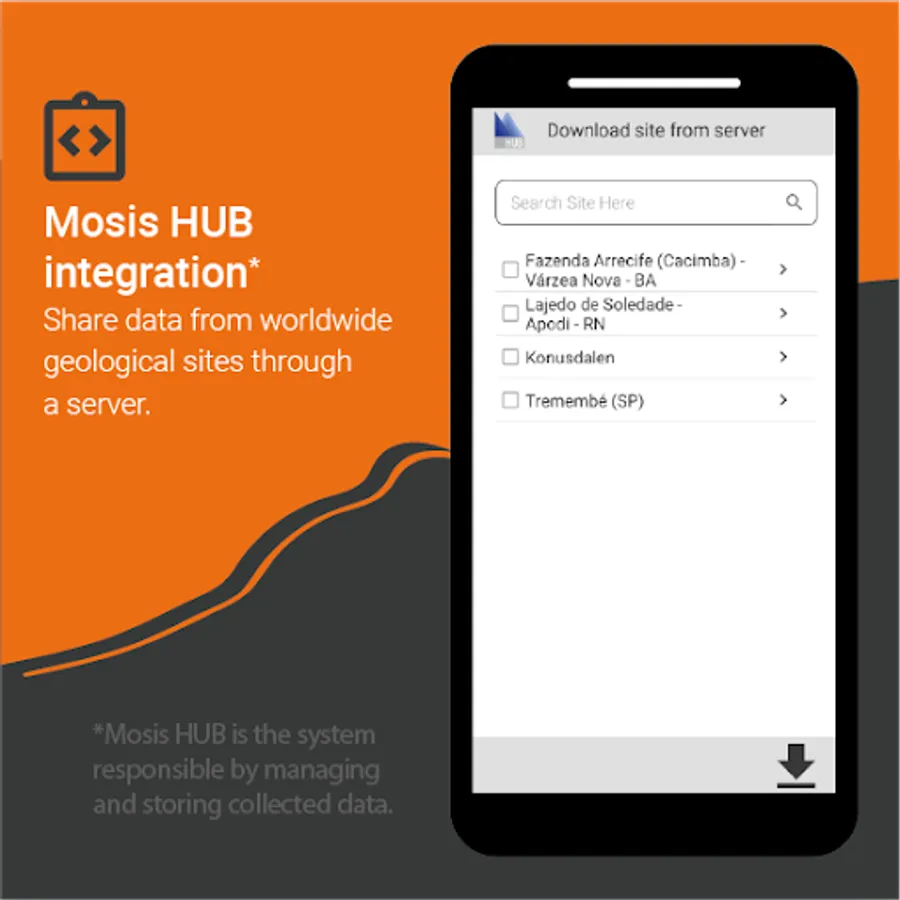 The Import Sites module makes it possible to list sites and surveys by importing sites and surveys stored in the Hub's online server. The module consists of the site listing screen and another for the survey listing.