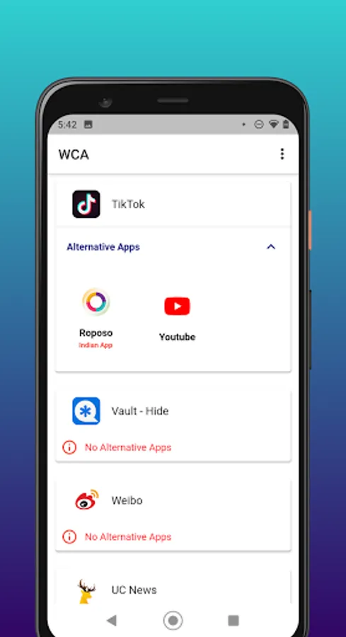 we are displaying  the app with their country name and their alternative app.