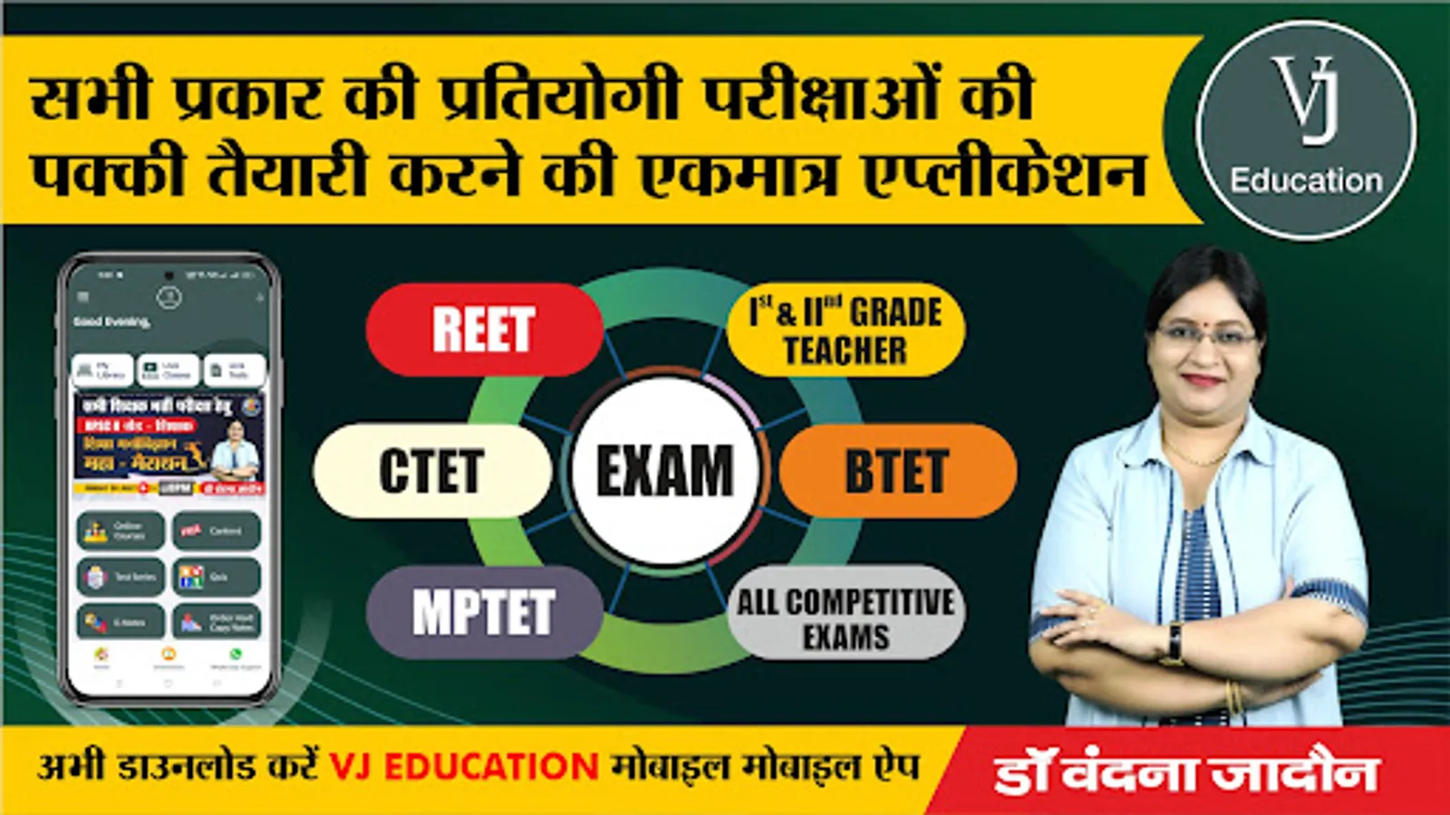 VJ Education App is the Best Teaching Exam Preparation App for CTET, REET I & II, BTET, HTET, MPTET, KVS, DSSS, and all competitive exams with Toppers & All India Rank #1 in several Exams. It is an educational platform guided by Dr. Vandana Jadon. We specialize in preparing students for teaching exams such as REET, CTET, DSSSB, and all teachers' exams. VJ Education offers a wide range of courses that are incredibly beneficial for students aspiring to become teachers.