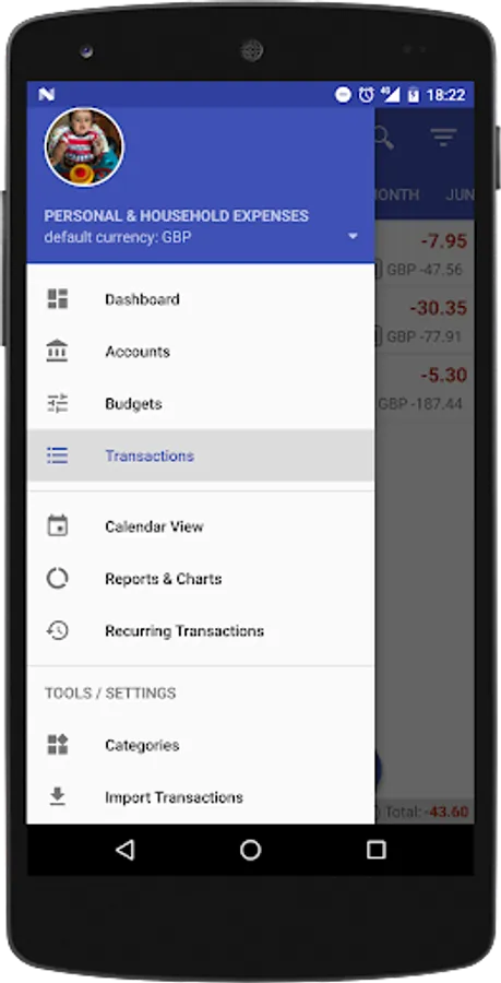 - READ / WRITE EXTERNAL STORAGE: To store backup files, import / export transactions, save receipt photos on your phone files