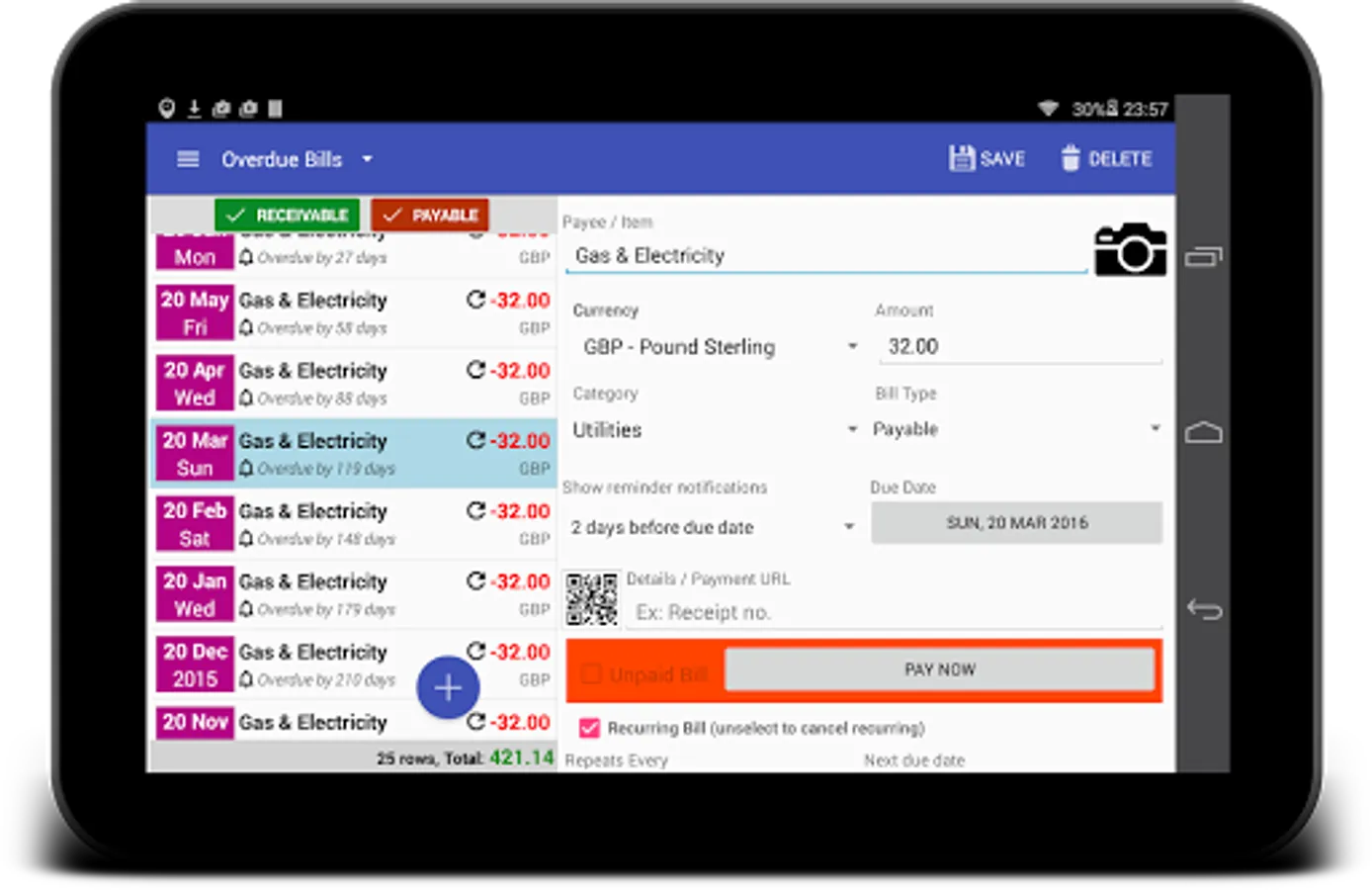 A complete financial solution to track your money, expenses, bank accounts & balances, transactions, cash flows, spending budget, store receipt photos and attachments, bills reminder & payments, recurring transactions / bills and many more.